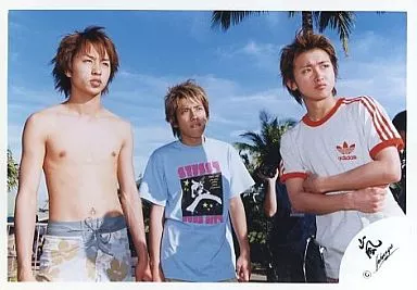 Japanese title: 生写真(ジャニーズ)/アイドル/嵐 嵐/櫻井翔・大野智・二宮和也/上半身・横型・背景屋外・櫻井上半身裸・センター二宮/公式生写真