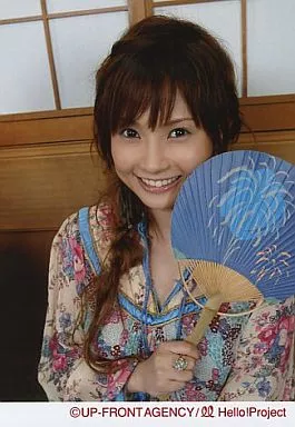 Japanese title: 生写真(ハロプロ)/アイドル/モーニング娘。 モーニング娘。/安倍なつみ/バストアップ・衣装ベージュ水色・右手内輪・背景障子/公式生写真