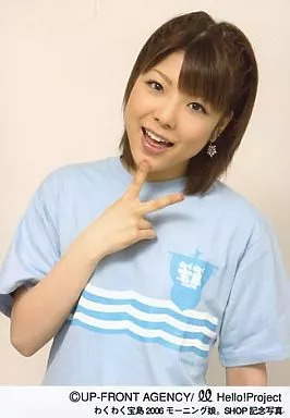 Japanese title: 生写真(ハロプロ)/アイドル/モーニング娘。 モーニング娘。/小川麻琴/上半身・衣装水色・右手ピース・体傾け・背景白/わくわく宝島2006モーニング娘。SHOP記念写真/公式生写真