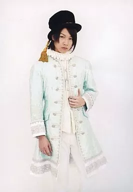 Japanese title: 生写真(男性)/俳優 天正遣欧少年使節/今野良太郎(原マルティノ)/膝上・衣装水色・黒帽子・左手襟・背景白・キャラクターショット/「戦国鍋TV・新春戦国鍋祭」