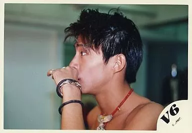 Japanese title: 生写真(ジャニーズ)/アイドル/V6 V6/三宅健/横型・上半身裸・ネックレス・左手顔・横向き/公式生写真