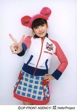 Japanese title: 生写真(ハロプロ)/アイドル/ミニモニ ミニモニ/加護亜衣/膝上・衣装ジャージスカート・ピンク耳・右手ピース・背景灰色/公式生写真