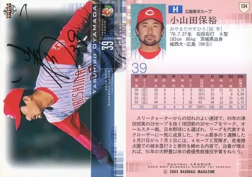 BBM / Regular Card / BBM2003 Baseball Card 1 st 134 : Yasuhiro Oyamada "Hiroshima Toyo Carp" / Sign Parallel