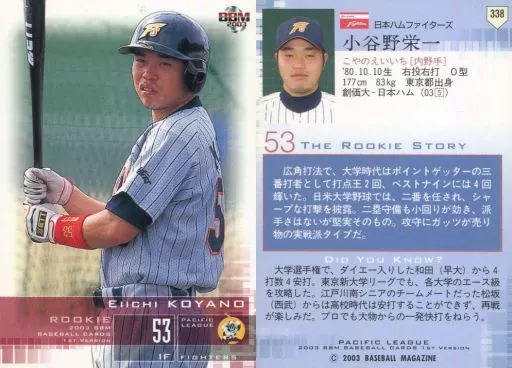 Japanese title: BBM/レギュラーカード/BBM2003ベースボールカード1st 338:小谷野栄一「北海道日本ハムファイターズ」