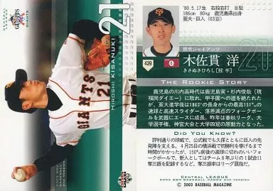 Japanese title: BBM/レギュラーカード/BBM2003ベースボールカード2nd 439:木佐貫洋「読売ジャイアンツ」