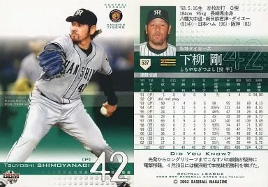 BBM / Regular Card / BBM2003 Baseball Card 2 nd 537 : Tsuyoshi Shimoyanagi "the hanshin tigers"