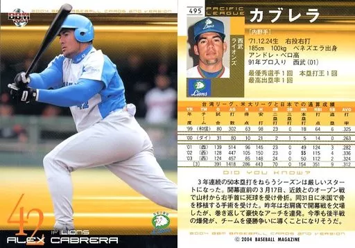 Japanese title: BBM/レギュラーカード/BBM2004ベースボールカード2nd 495:カブレラ「埼玉西武ライオンズ」