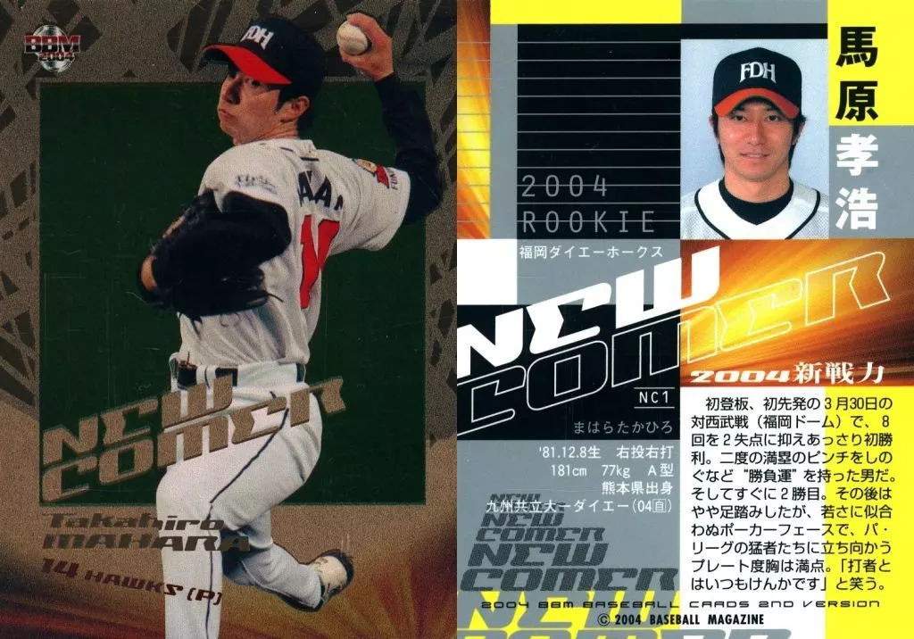 BBM/BBM2004 Baseball Card 2 nd NC01 : Takahiro Umahara "Fukuoka Daiei Hawks"