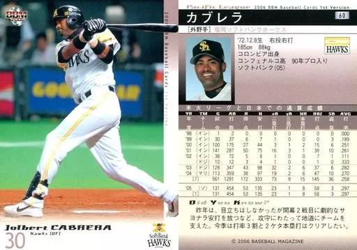 BBM / Regular Card / BBM2006 Baseball Card 1 st 60 : Cabrera "Fukuoka Soft Bank Hawks"