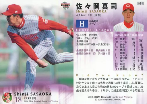 Japanese title: BBM/レギュラーカード/BBM2006ベースボールカード2nd 689:佐々岡真司「広島東洋カープ」