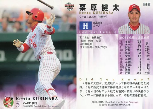BBM / Regular Card / BBM2006 Baseball Card 2 nd 696 : kenta Kurihara "Hiroshima Toyo Carp"