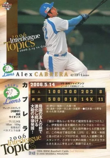 Japanese title: BBM/レギュラーカード/BBM2006ベースボールカード2nd 782:カブレラ「埼玉西武ライオンズ」