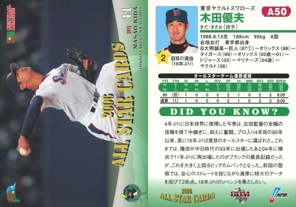 BBM / All-Star Card / BBM2006 Baseball Card A50 : Toshio Kida "Tokyo Yakult Swallows"