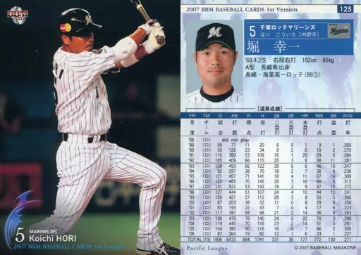 Japanese title: BBM/レギュラーカード/BBM2007ベースボールカード1st 125 : 堀幸一「千葉ロッテマリーンズ」