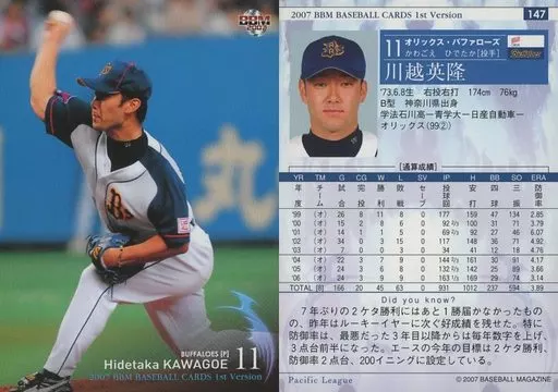 BBM / Regular Card / BBM2007 Baseball Card 1 st 147 : Hidetaka Kawagoe "Orix Buffaloes"