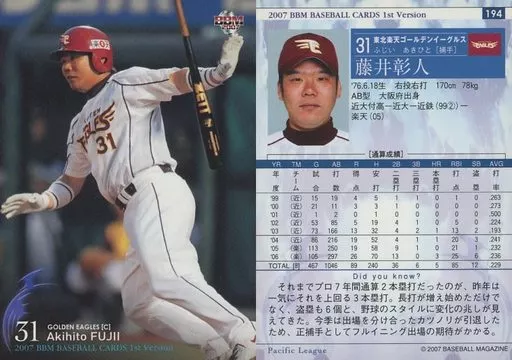 BBM / Regular Card / BBM2007 Baseball Card 1 st 194 : "Tohoku Rakuten Eagles" by Akito Fujii