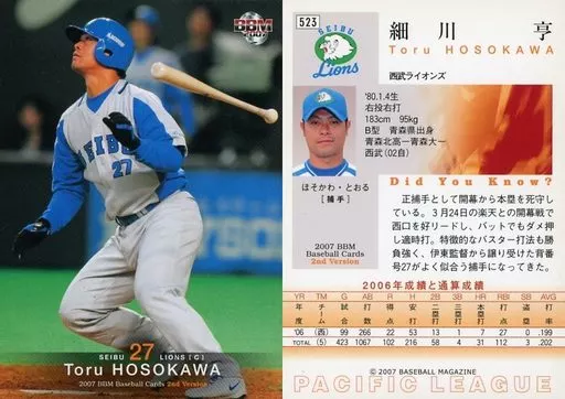 BBM / Regular Card / BBM2007 Baseball Card 2 nd 523 : Toru Hosokawa "Saitama Seibu Lions"