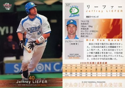 Japanese title: BBM/レギュラーカード/BBM2007ベースボールカード2nd 527 : リーファー「埼玉西武ライオンズ」