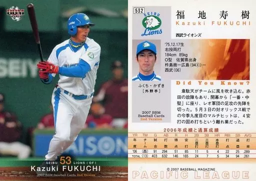BBM / Regular Card / BBM2007 Baseball Card 2 nd 532 : Kazuki Fukuchi' Saitama Seibu Lions'