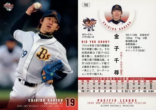 Japanese title: BBM/レギュラーカード/オリックス・バファローズ/BBM2008 ベースボールカード2ndバージョン 702 [レギュラーカード] : 金子千尋