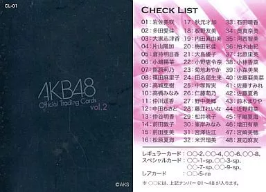 Japanese title: アイドル(AKB48・SKE48)/AKB48オフィシャルトレーディングカードvol.2 CL-01 : チェックリスト/裏面ピンク/AKB48オフィシャルトレーディングカードvol.2