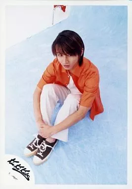 Japanese title: 生写真(ジャニーズ)/アイドル/KinKi Kids KinKi Kids/堂本光一/オレンジシャツ/体育座り/床水色/公式生写真