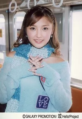 Japanese title: 生写真(ハロプロ)/アイドル/モーニング娘。 石川梨華/バストアップ・指交差・水色セーター・水色のマフラー・背景車内/生写真