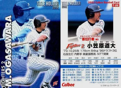 Japanese title: スポーツ/2003プロ野球チップス第1弾/日本ハム/タイトルホルダーカード T-06:小笠原 道大(粒状パラレル仕様)