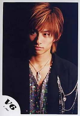 Japanese title: 生写真(ジャニーズ)/アイドル/V6 V6/三宅健/バストアップ・衣装黒・チェーン・目線左・背景黒/公式生写真