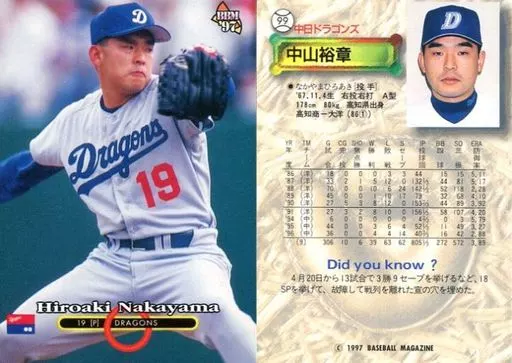 BBM / Regular Card / Chunichi Dragons / BBM' 97 Baseball Card 99 [Regular Card] : Hiroaki Nakayama
