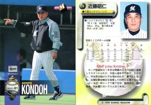 Japanese title: BBM/レギュラーカード/千葉ロッテマリーンズ/BBM’98 ベースボールカード 524 [レギュラーカード] : 近藤昭仁