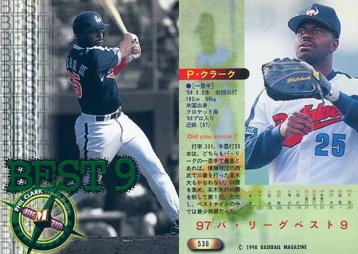Japanese title: BBM/レギュラーカード/大阪近鉄バファローズ/BBM’98 ベースボールカード 536 [レギュラーカード] : クラーク