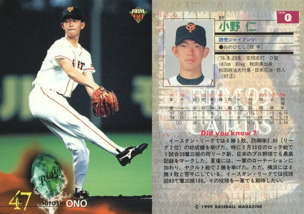Japanese title: BBM/レギュラーカード/BBM99ベースボールカード 89[レギュラーカード]:小野仁