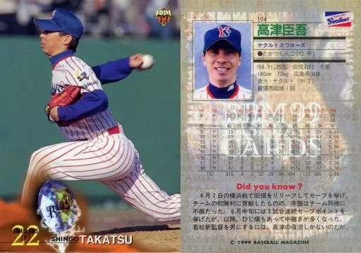 Japanese title: BBM/レギュラーカード/BBM99ベースボールカード 104[レギュラーカード]:高津臣吾