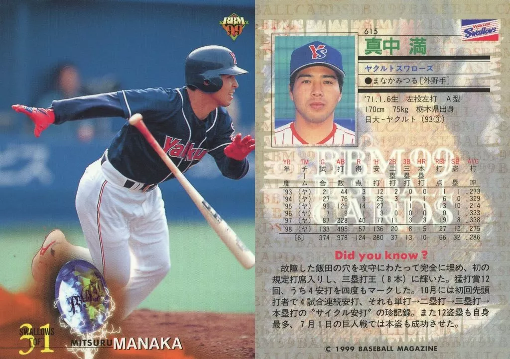 Japanese title: BBM/レギュラーカード/BBM99ベースボールカード 615[レギュラーカード]:真中満