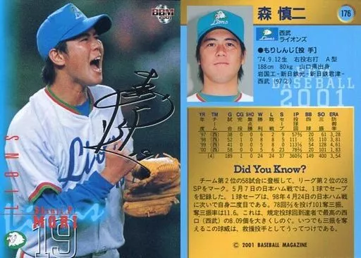 Japanese title: BBM/レギュラーカード/BBM2001ベースボールカード 176:森慎二(黒サインパラレル版)