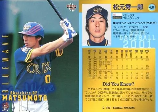 BBM / Regular Card / BBM2001 Baseball Card 460 : Shuichiro Matsumoto "Orix Buffaloes"