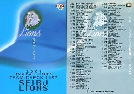 BBM / Regular Card / BBM2001 Baseball Card 550 : Check List Saitama Seibu Lions