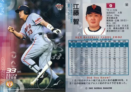 Japanese title: BBM/レギュラーカード/BBM2002ベースボールカード1st 50:江藤智「読売ジャイアンツ」/銀サインパラレル