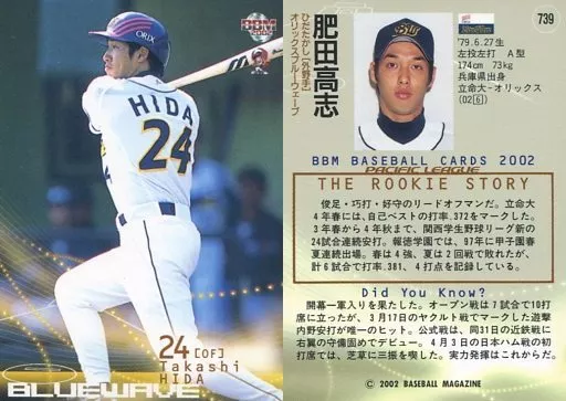 BBM / Regular Card / BBM2002 Baseball Card 2 nd 739 : Takashi Hida "Orix Buffaloes"