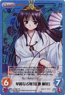Japanese title: カオス/SR/Chara /地闇/ブースターパック 「OS:オーガスト1.00」 AU-062SR[SR]:(ホロ)華麗なる舞「紅瀬桐葉」
