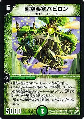 Japanese title: デュエルマスターズ/R/自然/進化クリーチャー/コロニー・ビートル/[DM-06]闘魂編 第1弾(インビンシブル・ソウル) 35/110[R]:超空要塞バビロン