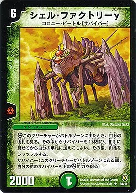 Japanese title: デュエルマスターズ/R/自然/クリーチャー/コロニー・ビートル[サバイバー]/[DM-06]闘魂編 第1弾(インビンシブル・ソウル) 37/110[R]:シェル・ファクトリーγ