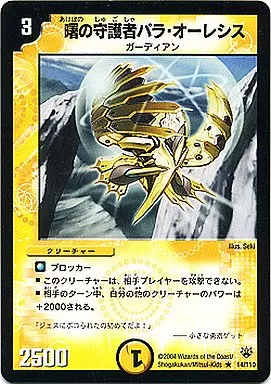 Japanese title: デュエルマスターズ/R/光/クリーチャー/ガーディアン/[DM-10]聖拳編 第1弾(エターナル・アームズ) 14/110[R]:曙の守護者パラ・オーレシス