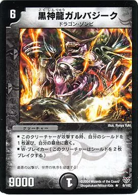 Japanese title: デュエルマスターズ/R/闇/[DMC-19]ザキラ龍武デッキ(ドラゴン・コマンダー) 6/102[R]:黒神龍ガルバジーク