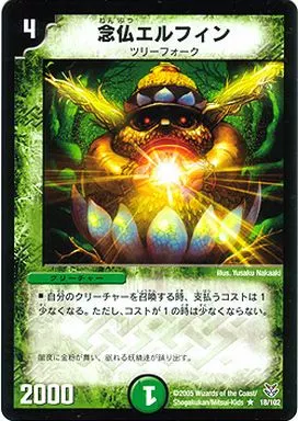 Japanese title: デュエルマスターズ/R/自然/[DMC-20]双龍誕生(ドラゴンインパクト)~勝舞エディション~ 18/102[R]:念仏エルフィン
