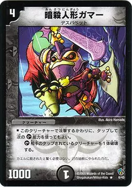 Japanese title: デュエルマスターズ/R/闇/[DMC-22]ヘルブースト1/2デッキ 6/43[R]:暗殺人形ガマー