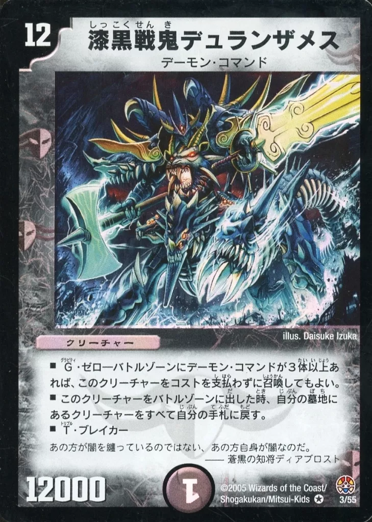 Japanese title: デュエルマスターズ/VR/闇/クリーチャー/デーモン・コマンド/[DM-16]転生編 第3弾 魔導黙示録(オリジン・オブ・パフェクトギア) 3/55[VR]:漆黒戦鬼デュランザメス