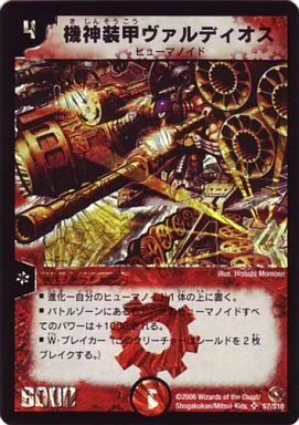 Japanese title: デュエルマスターズ/SR/火/進化クリーチャー/ヒューマノイド/[DM-18]ベスト・チャレンジャー S7/S10[SR]:機神装甲ヴァルディオス