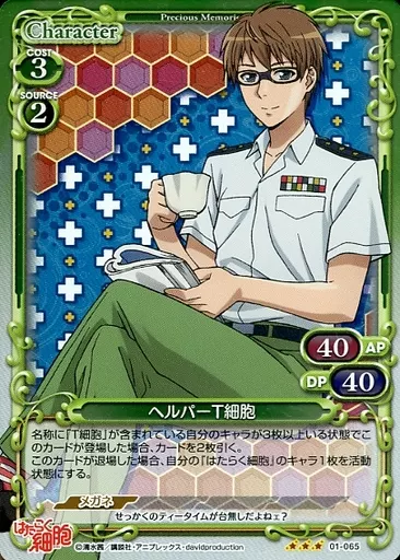 Japanese title: プレシャスメモリーズ/R/キャラクター/緑/はたらく細胞 ブースターパック 01-065[R]:(ホロ)ヘルパーT細胞